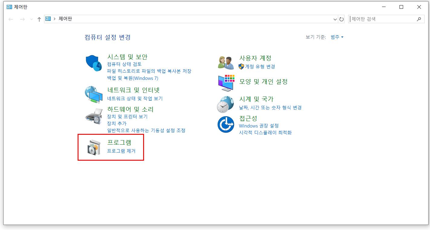 제어판을 열면 [프로그램 제거] 라는 아이콘이 보일겁니다.