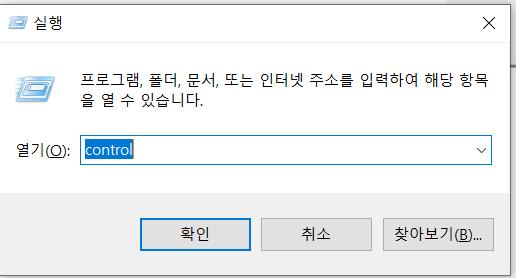 일반 프로그램 지우듯 제어판에서 지워주면 되는데요. 혹시 제어판 아이콘이 안보이는분들은 실행창을 열어 control 이라고 입력하면 제어판을 찾을 수 있습니다.