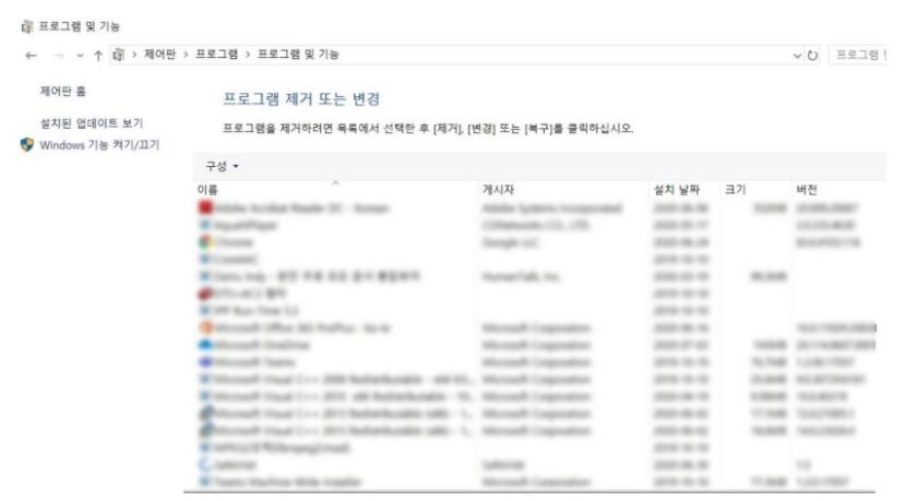 물론 애초에 설치가 되어있지 않거나, 이미 지운상태라면 보이지 않겠죠?